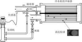 圖1冷凝器膠球自動(dòng)在線清洗裝置工作原理