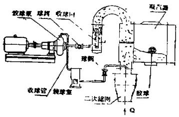 1、收球網 2、裝球室 3、二次濾網 4、球閥 5、冷凝器 6、球閥 7、液壓閘閥 8、膠球泵