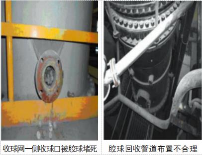 采用大流量膠球泵,同時將系統(tǒng)DN108mm管道改為DN200mm管道,使原保持流量≥200m3/h,保證了膠球能夠暢通無阻地流動。