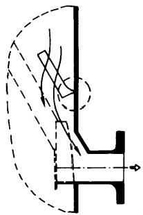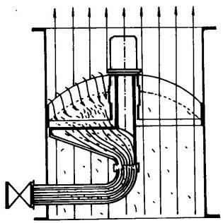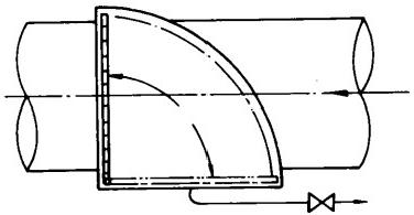 冷卻水中含有各類雜物進入凝汽器后會堵塞管板及管口處,不但減少冷卻水流量、降低循環倍率,還阻礙膠球對冷卻管的清洗,在冷卻水泵前雖設有攔污柵和一次濾網,但往往不能把雜物清理于凈。為了確保水質清潔,還需在靠近凝汽器入口處加裝二次濾網來清理水中雜物。由于二次濾網處在凝汽器入口附近,其位置限制了它不能象一次濾網,攔污柵那樣占據很大的空間,尤其是在老機組改造項目中所給的許用空間小,只能在管道上的直段或利用彎頭的位置安裝二次濾網。而早期的二次濾網相當簡單直觀,如翻板式(見圖4),隨后出現了固定切向外旋式、帶導向蝶閥外旋式,……等型式的二次濾網。直到目前為止,上述各種型式的二次濾網包括原始的翻板式仍有電廠在使用,由于排污性能差,當二次濾網被雜物堵塞而不能排污沖洗時,只能停機人工清除雜物。嚴重影響了機組經濟效益。