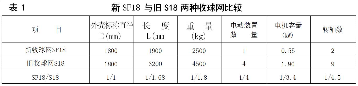 (2)內部結構大大簡化三代收球網的內部結構比二代產品有了很大改進,由表1可見三代收球網只有兩根轉軸,軸頭由連桿組合成一個公用的電動裝置,而二代產品卻有大小共9根轉軸,由4個電動裝置操縱,因此前者費用大為減少。