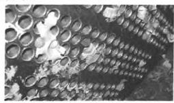 凝汽器銅管的結垢、腐蝕與膠球系統的運行情況息息相關。通過查詢本廠凝汽器膠球投運記錄看出,2010年以前2臺機組高速循泵運行期間,膠球收球率沒有出現長時間不合格現象,均能達到95%以上。2010年11月進入冬季,循泵改為低速運行方式后,收球率開始出現不同程度的下降(80%左右),低時收球率只有60%,通過排查,終確定收球率低的根本原因為凝汽器水室積存填料過多,低速循泵時銅管內水流速低(如圖1)。