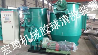 膠球清洗裝置還可以實(shí)現(xiàn)自動(dòng)化運(yùn)行,主要靠PLC模塊自動(dòng)化控制,電動(dòng)二次濾網(wǎng)在進(jìn)水口配有差壓變送器。當(dāng)電動(dòng)二次濾網(wǎng)網(wǎng)面通流面積減少時(shí),達(dá)到設(shè)計(jì)差壓值時(shí),差壓變送器將信號傳送給PLC,PLC模塊指令啟動(dòng)電動(dòng)二次濾網(wǎng)傳動(dòng)機(jī)構(gòu),同時(shí)打開電動(dòng)排污閥進(jìn)行排污。當(dāng)差壓值恢復(fù)時(shí),差壓變送器將信號傳送給PLC模塊,PLC模塊指令停止電動(dòng)二次濾網(wǎng)旋轉(zhuǎn),關(guān)閉電動(dòng)排污閥。PLC同時(shí)配有時(shí)間實(shí)施計(jì)劃,膠球清洗投用可設(shè)置二級時(shí)間保護(hù),時(shí)間設(shè)計(jì)范圍可以設(shè)置10-999小時(shí)自動(dòng)投用一次。投用時(shí)間可設(shè)置為15-30分鐘,投用時(shí)間設(shè)置:PLC指令打開裝球室前置電動(dòng)球閥,同時(shí)將信號傳送給膠球輸送泵,啟動(dòng)膠球輸送泵。同時(shí)打開循環(huán)水進(jìn)水管道上電動(dòng)投球閥,當(dāng)正常運(yùn)行后PLC指令打開裝球室出口電動(dòng)球閥,循環(huán)水管道回水管道上裝有收球閥,PLC設(shè)置時(shí)間清洗為15-30分鐘后。PLC指令關(guān)閉裝球室的電動(dòng)閥門,PLC再指令關(guān)閉電動(dòng)投球閥門,再指令關(guān)閉收球電動(dòng)閥門、其次PLC指令停止膠球泵。