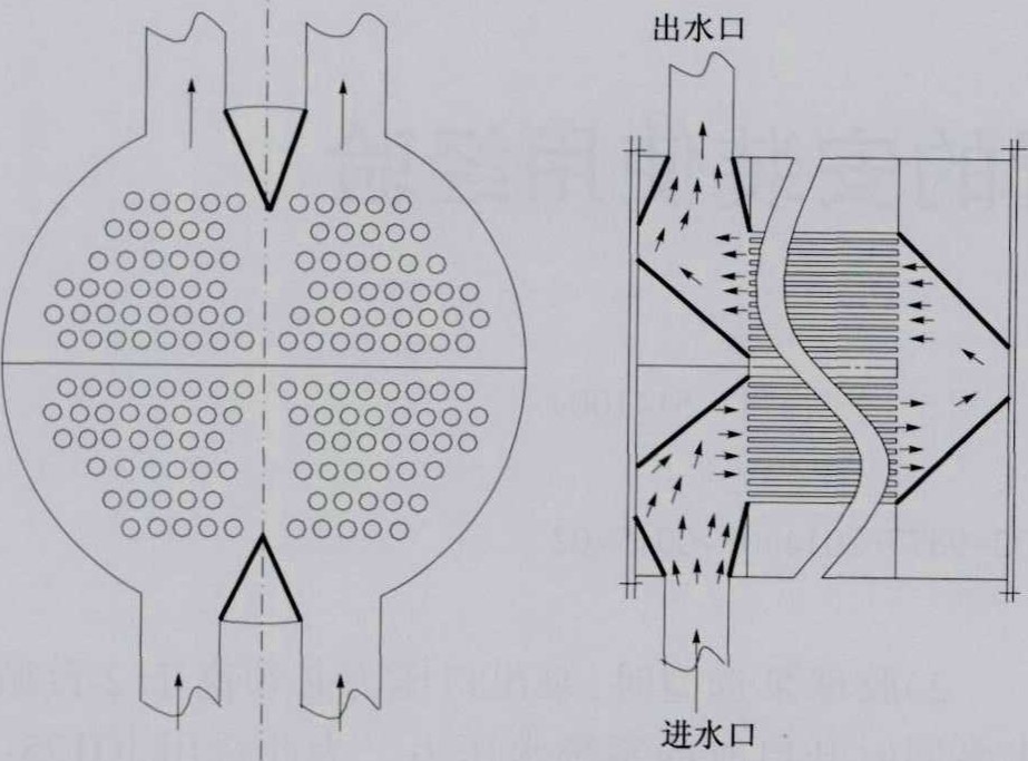 圖2凝汽器水室內(nèi)部增加導(dǎo)流板示意粗線條為增加的導(dǎo)流板