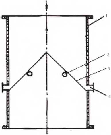 筒壁吻合處間隙大于5mm,這種設(shè)計(jì)在運(yùn)行過程中不僅形成比較大的水阻.而且極易產(chǎn)生渦流,使膠球不能順利進(jìn)入收球口,當(dāng)數(shù)量增多時(shí),容易造成膠球堵塞或漏入循環(huán)水系統(tǒng)中(熱電中心的各循環(huán)冷卻水塔出水口常發(fā)現(xiàn)大量膠球)熱電生產(chǎn)中心曾將2機(jī)收球網(wǎng)進(jìn)行過試改造,將收球網(wǎng)改成“V”型,如圖3所示,但改造完成后,膠球清洗裝置投入運(yùn)行.發(fā)現(xiàn)有大址膠球卡在兩個(gè)收球網(wǎng)底部接觸的地方,無法回到收球室,其收球率依然偏低,只有30%左右,改造未達(dá)到預(yù)期目的
