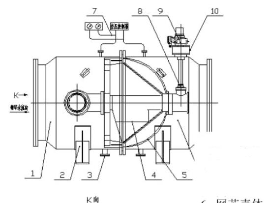 1.進(jìn)水殼體;2.馬鞍座;3.放水管;4.排污斗;5.網(wǎng)芯;6.網(wǎng)芯殼體;7.測(cè)壓管路;8.傳動(dòng)系統(tǒng);9.排污斗電動(dòng)裝置;10.接近開關(guān);11.檢修人孔門;12.排污彎管。膠球清洗裝置系統(tǒng)二次濾網(wǎng)技術(shù)特點(diǎn):