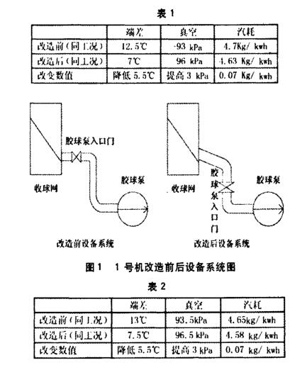 1、膠球清洗裝置改造前后主要指標(biāo)對比